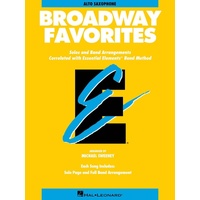 A collection of Broadway songs arranged to be played by either full bandor by individual soloists with optional accompaniment CD. Each arrangem ent is correlated with a specific page in the Essential Elements Band Method Books. Includes: Beauty and the Beast, Cabaret, Circle of Life, Don't Cry for Me Argentina, Edelweiss, Get Me to the Church on Time, Go Go Go Joseph, I Dreamed a Dream, Memory, The Phantom of the Opera, and Seventy Six Trombones. Broadway Favorites Publisher: Hal Leonard Instrument: Saxophone Pages: 24