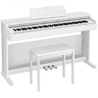 PIANO PURITY The AP-270's award-winning AiR Sound Source includes two beautiful new stereo grand piano tones which comes alive with realistic damper resonance, simulating the entire body of the instrument, not just the strings. The AP-270 also features a stunning New York grand piano Tone, with a wide dynamic range suitable for many genres. In addition to pianos, the AP-270 features a variety of 19 instrument Tones, with the ability to layer and split them as needed. With a generous 192 notes of polyphony, even the most complex performances will sound perfectly natural. WELL-PLAYED The acclaimed Tri-Sensor II Scaled Hammer Action piano keys give you an incredibly realistic and natural feel. The simulated ebony and ivory textures complete the experience, combined with an innovative hammer action that is accurately scaled across the entire key range. Adjustable touch sensitivity allows customization to suit any playing style, and adjustable hammer response accurately reproduces the delay between when the key is struck and a note is produced. WELL-HEARD The AP-270 includes a powerful stereo amplification system. The speakers are conveniently located for an optimal listening experience, and are crystal-clear across the entire audio spectrum. The AP-270's sleek design conceals the speakers from obvious view, preserving the natural aesthetic of a wooden instrument. WELL-EDUCATED The AP-270 is not only ideal for practice and performance, but also for lesson environments. You can connect two sets of headphones using the ¼ jacks on the front panel, allowing quiet practice. Duet Mode splits the piano into two equal pitch ranges, allowing a student and teacher to sit at the same instrument. WELL-APPOINTED The built-in Music Library contains 60 songs, with room for ten additional songs of your choice. You can also record your performances using the AP-270s two-track MIDI recorder. WELL-DRESSED Thoughtfully designed to compliment any d©cor, the AP-270 is available in either a black, or walnut and includes a matching bench. Its compact, elegant cabinet with sliding key cover adds to the beauty of any room. WELL-CONNECTED The AP-270 connects via class-compliant USB to any PC, Mac, iOS, or Android device, with no drivers or installations needed.