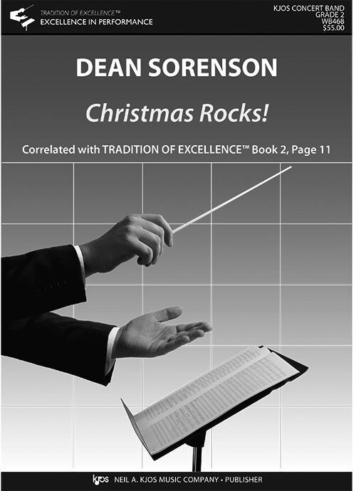 Rock around the holidays with Dean Sorenson’s medley of 3 popular Christmas carols arranged for maximum good cheer! This arrangement starts off with a cookin’ version of Deck the Halls, followed by a Latin treatment of O Tannanbaum (O Christmas Tree), replete with grooving Bossa rhythms. A bluesy Jingle Bells completes this trio of happy holiday tunes. Christmas Rocks! correlates with Tradition of Excellence Book 2, page 11.
