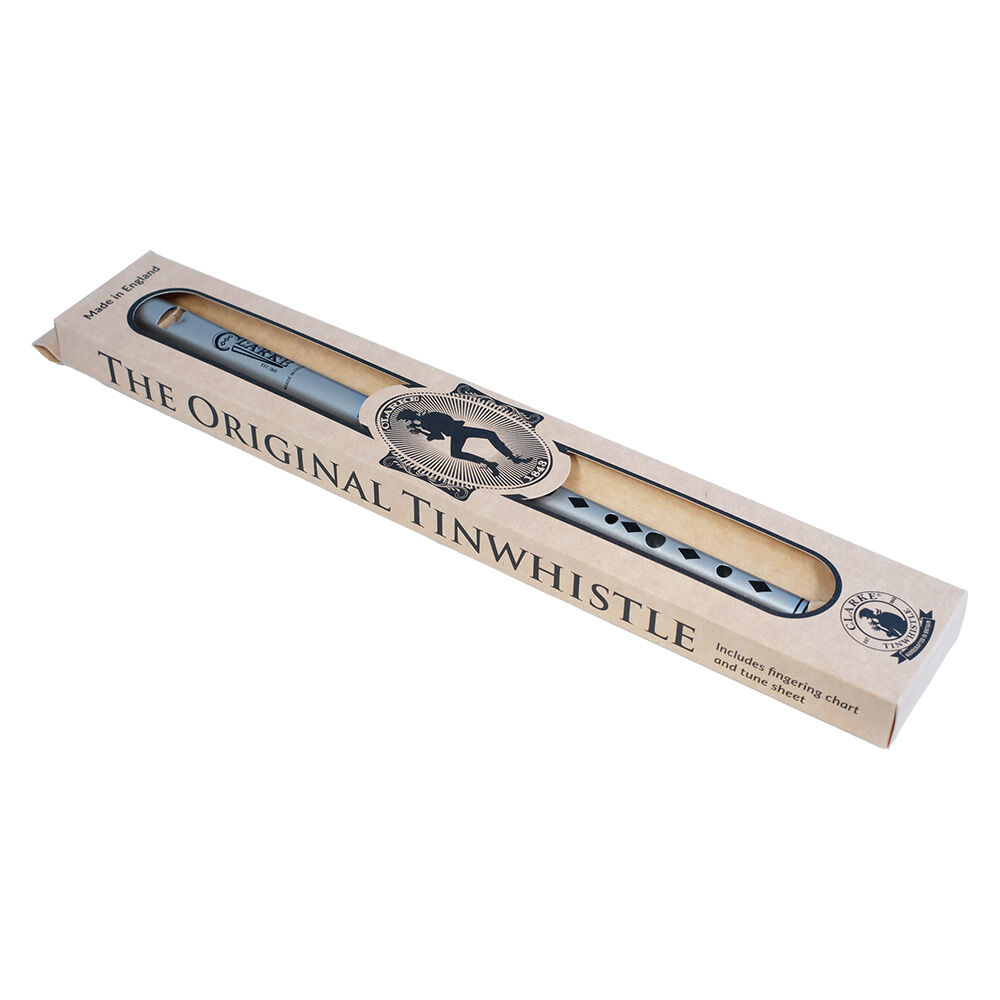 Clarke “Original Penny Whistle” Natural “C” The original hand-made penny whistle featuring traditional conical bore, wrapped tin plate and a wooden plug in the mouthpiece. The coated black whistles are individually boxed and supplied with a tune sheet. Made in England since 1843.
