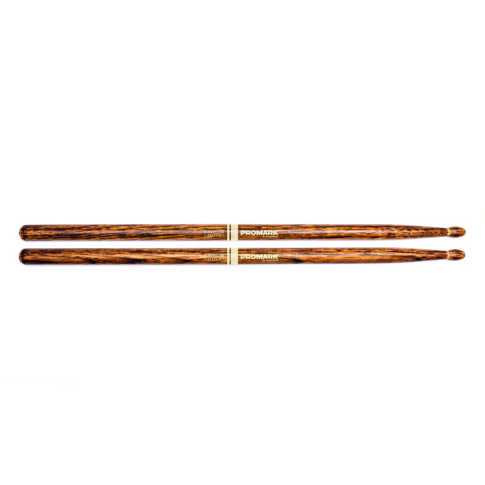 Promark's most durable Classic 5B ever. FireGrain is a revolutionary heat-tempering process that transforms ordinary hickory drumsticks into precision tools with unprecedented durability. While keeping their original weight, balance, and attack, Promark FireGrain sticks allow drummers to hit harder and play longer, naturally. No excess vibration, no space age gimmicks, just natural hickory, hardened by flame.