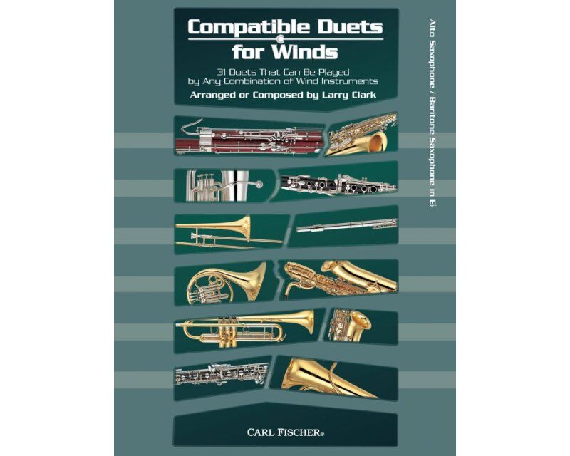 These invaluable collections contain 31 duets in a variety of styles (classical, folk music, new original pieces) that can be played with any combination of two wind instruments. Students can develop their chamber ensemble skills while playing with their friends, no matter what instruments they play. Ranging from grade levels 2-3, Compatible Duets for Winds is perfect for band directors to buy for use in the classroom, and its flexibility makes it a must-have for any wind player. Compatible Duets for Winds Composer: Larry Clark Publisher: Carl Fischer Instrument: Saxophone Format: Duo Pages: 48
