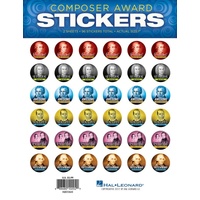 Reward your music students' achievements with stickers of the great composers! Composers and words of encouragement include: Bach (Superior), Beethoven (Awesome), Chopin (Inspired), Debussy (Impressive), Haydn (Outstanding), Joplin (Soulful), Mozart (Brilliant), and Schumann (Beautiful). Each package includes a total of 96 full-color stickers – 12 stickers of 8 different designs. Composer Award Stickers Publisher: Hal Leonard Instrument: Reference Pages: 1
