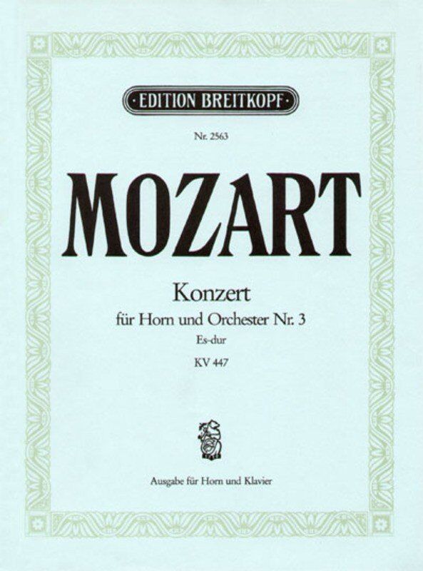 Parts for horn in Eb and F Concerto No. 3 in Eb major K. 447 Composer: Wolfgang Amadeus Mozart Publisher: Breitkopf & Härtel Instrument: Horn Pages: 28