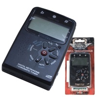 This is our popular Crossfire CMT-100-BLK Digital Metronome and Chromatic Tuner . Suitable for Acoustic, Electric and Bass Guitar tuning using plug-in socket or built-in mic. Powered by two ‘AAA’ batteries (included). This model is Black and is also avail