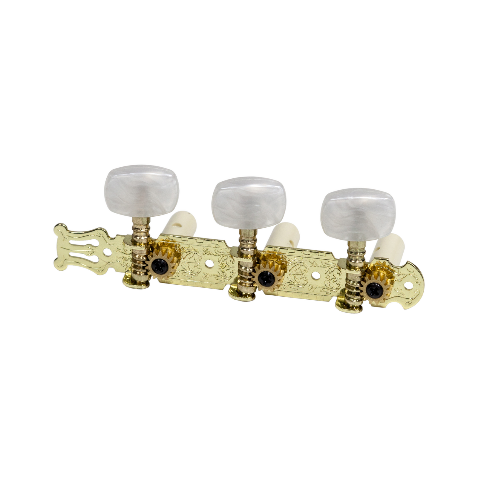 The CMH-CGS Crossfire Classical Guitar Machine Head Set features three a side, gold plated classical styled tuners with oval buttons.