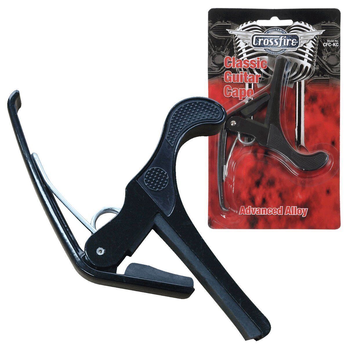 This easy to use CFC-KC K-Style Capo is ideal for Classical Guitars. The capo is most commonly used to raise the pitch of a fretted instrument so that a player can perform a piece in a certain key using different fingerings than they would use if played "open" (i.e. without a capo). In effect, a capo uses a fret of an instrument to create a new nut at a higher note than the instrument's actual nut. No matter the style, the capo is typically placed as close to the desired fret as possible, just behind the fret. This holds the strings down behind the fret as securely as possible with the sharpest possible angle to ensure they will remain fretted