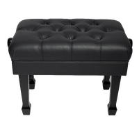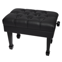 The Crown CPB-H401-BLK features a soft padded faux leather seat, sturdy wood frame, under-seat storage compartment and heavy-duty metal mechanism to adjust the height of the seat. Simple assembly required. The Crown hydraulic piano stool makes finding the perfect playing height a breeze with its easy to use hydraulic height adjustment system. With a single twist of the adjustment knob the Crown hydraulic stool can be raised or lowered to your preferred playing position. Features: Height adjustable piano stool. Double padded seat for ultimate comfort. Storage compartment under seat. Soft, padded faux leather with tufted design. Basic skirted frame. Black gloss finish. Dimensions: 60cm (W) x 40cm (D) Minimum Height: 47cm Maximum Height: 55cm Storage Dimensions: 48cm (W) x 27cm (D) x 4cm (H)