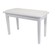 The Crown CPS-1-WHT features a soft faux leather seat, a sturdy wood frame and an under-seat storage compartment. Simple assembly required. Features: Duet stool comfortably seats two players. Stylish timber trim design. Storage compartment under stool. Soft, padded, faux leather seat. White gloss finish. Dimensions: 75cm (W) x 36cm (D) x 50cm (H) Storage Dimensions: 65cm (W) x 25cm (D) x 5.5cm (H)
