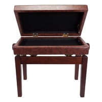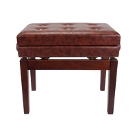 Crown Deluxe Height Adjustable Piano Stool with Storage Compartment, Walnut Finish, Tufted Faux Leather Seat