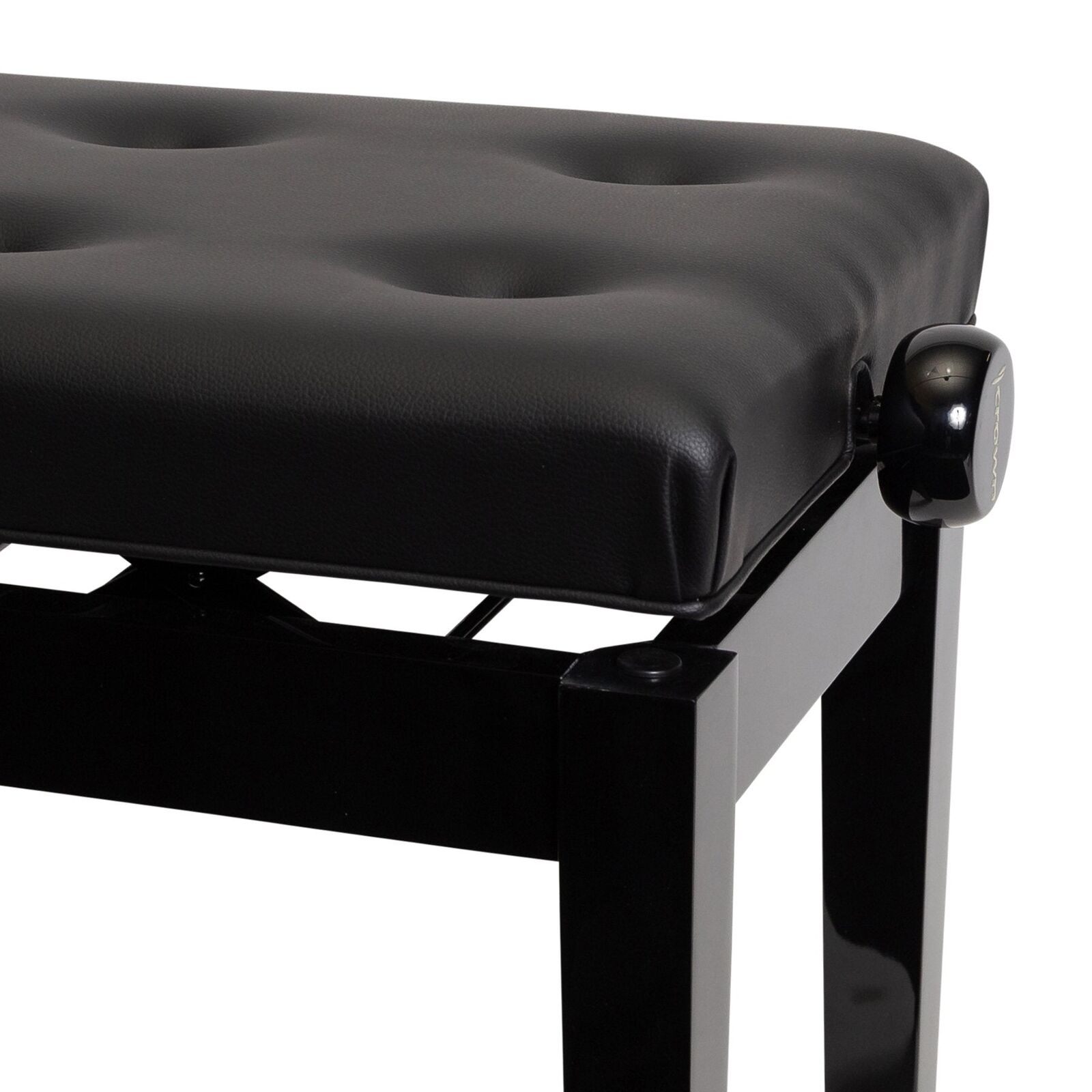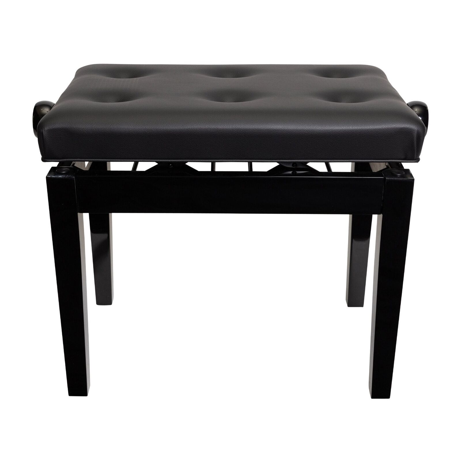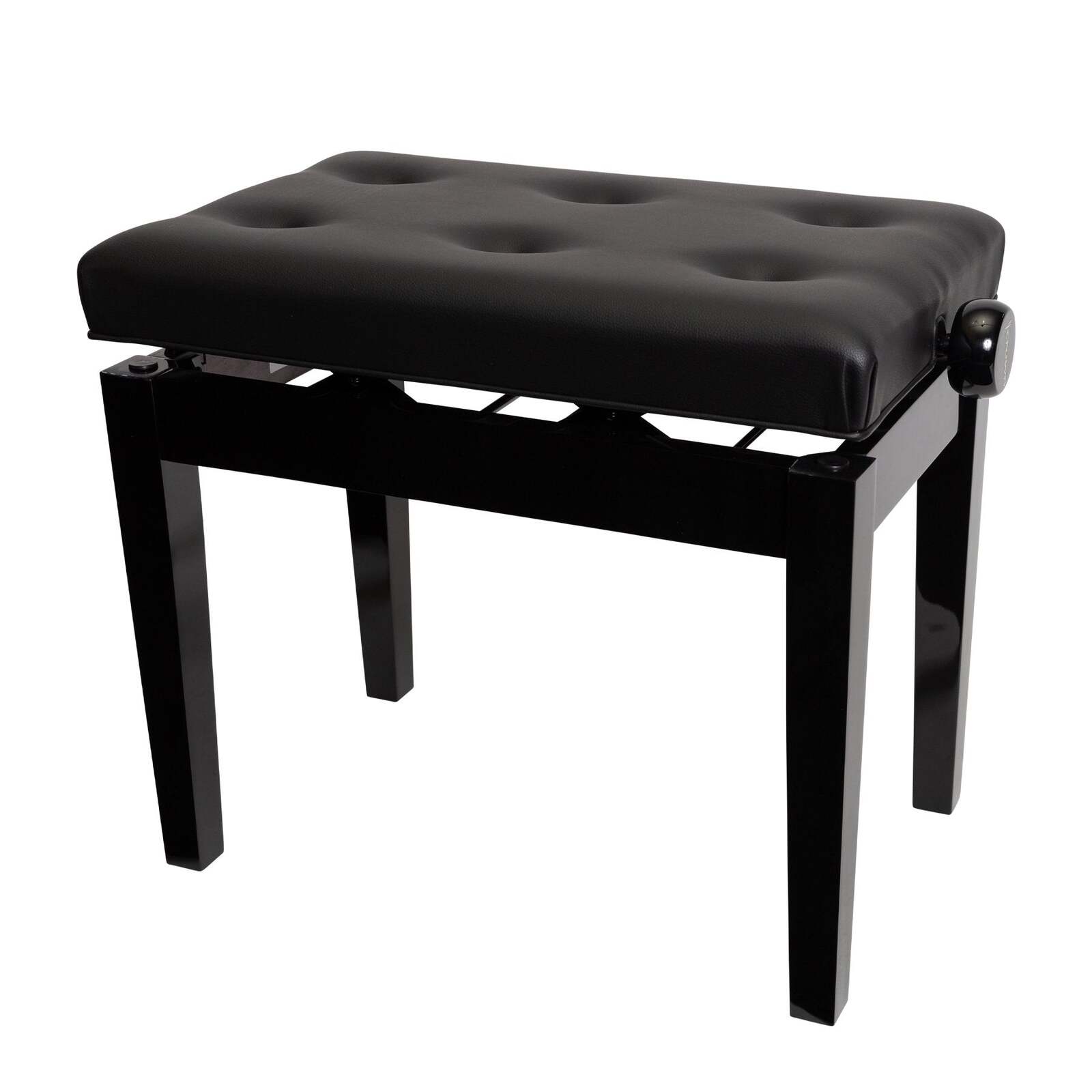 The Crown CPB-11-BLK features soft faux leather, a sturdy wood frame and a heavy-duty metal mechanism to adjust the height of the seat. Simple assembly required. Features: Height adjustable stool. Soft, padded faux leather with tufted design. Black gloss finish. Dimensions: 63cm (W) x 34cm (D) Minimum Height: 46cm Maximum Height: 54cm