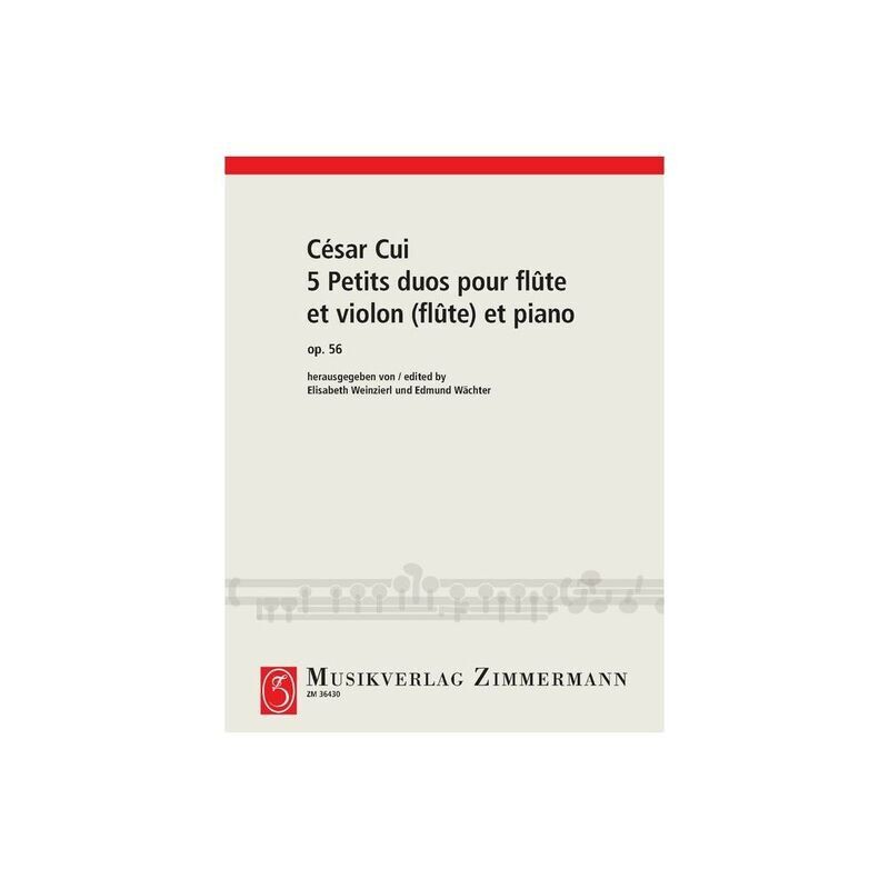 The 5 Petits duos for flute, violin and piano are dedicated to the last legitimate successor to the tsarist throne and his sister: A Leurs Altesses Imperiales Monseigneur le Grand Duc Michel Alexandrowitch et Madame la Grande Duchesse Olga Alexandrowna. He played the flute, she the violin. These charming short pieces are now available in a new edition with an additional alternative second flute. 5 Petits duos pour flute et violin (flute) et piano Op. 56 Composer: Cesar Cui Publisher: Zimmermann Instrument: Flute|Violin Pages: 52