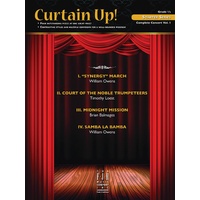 For directors on a budget, we are pleased to offer this exciting collection of four pieces at one low price. Designed to work well as a full concert program, these pieces represent a variety of styles and composers for a well-balanced program! Titles include: Synergy March (William Owens), Court of the Noble Trumpeteers (Timothy Loest), Midnight Mission (Brian Balmages), and Samba La Bamba (William Owens). Curtain Up! Complete Concert Starter Series Vol. 1 Composer: Brian Balmages|Timothy Loest|William Owens Publisher: FJH Music Company Instrument: Band Format: Full Score Pages: 1