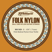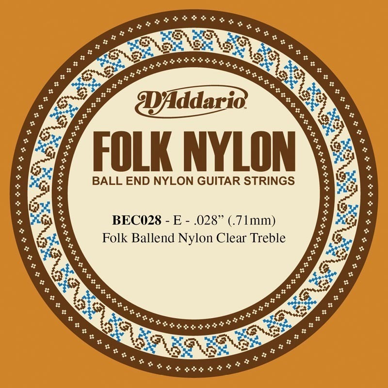 D'Addario BEC028 Folk Nylon Guitar Single String, Clear Nylon, Ball End, .028