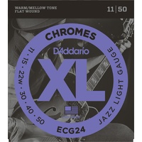 ECG24, D'Addario's best selling gauge of flatwound strings, delivers a balance of smooth feel, warm/mellow tone and optimal tension, ideal for traditional jazz, rockabilly twang, Randamp;B and some pop/rock styles.