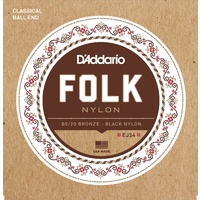 EJ34 Folk Nylon strings feature 80/20 bronze basses, black nylon trebles, and D'Addario ball ends to accommodate a variety of guitars and string changing options.