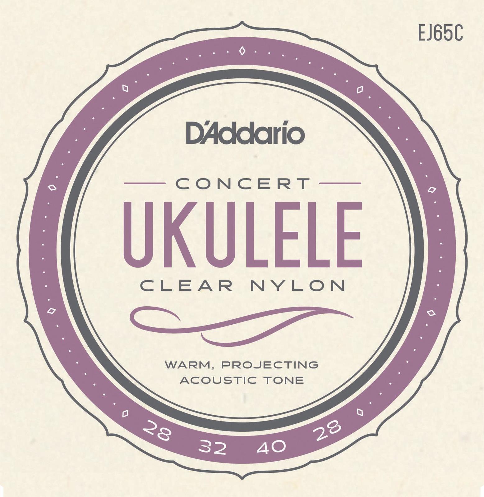 The EJ65C is an all-nylon string set designed for use with concert ukuleles. Each string is manufactured on DAddarios own advanced monofilament extrusion line built exclusively for the production of musical instrument strings. This set is optimized for usage with standard GCEA tuning.