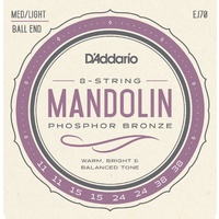 EJ70, D'Addario's mandolin set featuring ball ends rather than standard loop ends are ideal for all mandolins requiring ball ends. EJ70's contain the E and A strings from a medium gauge mandolin set with the slightly lighter D and G strings from a light gauge set. Phosphor Bronze construction provides an ideal balance of warmth, brightness and overall balanced tone.
