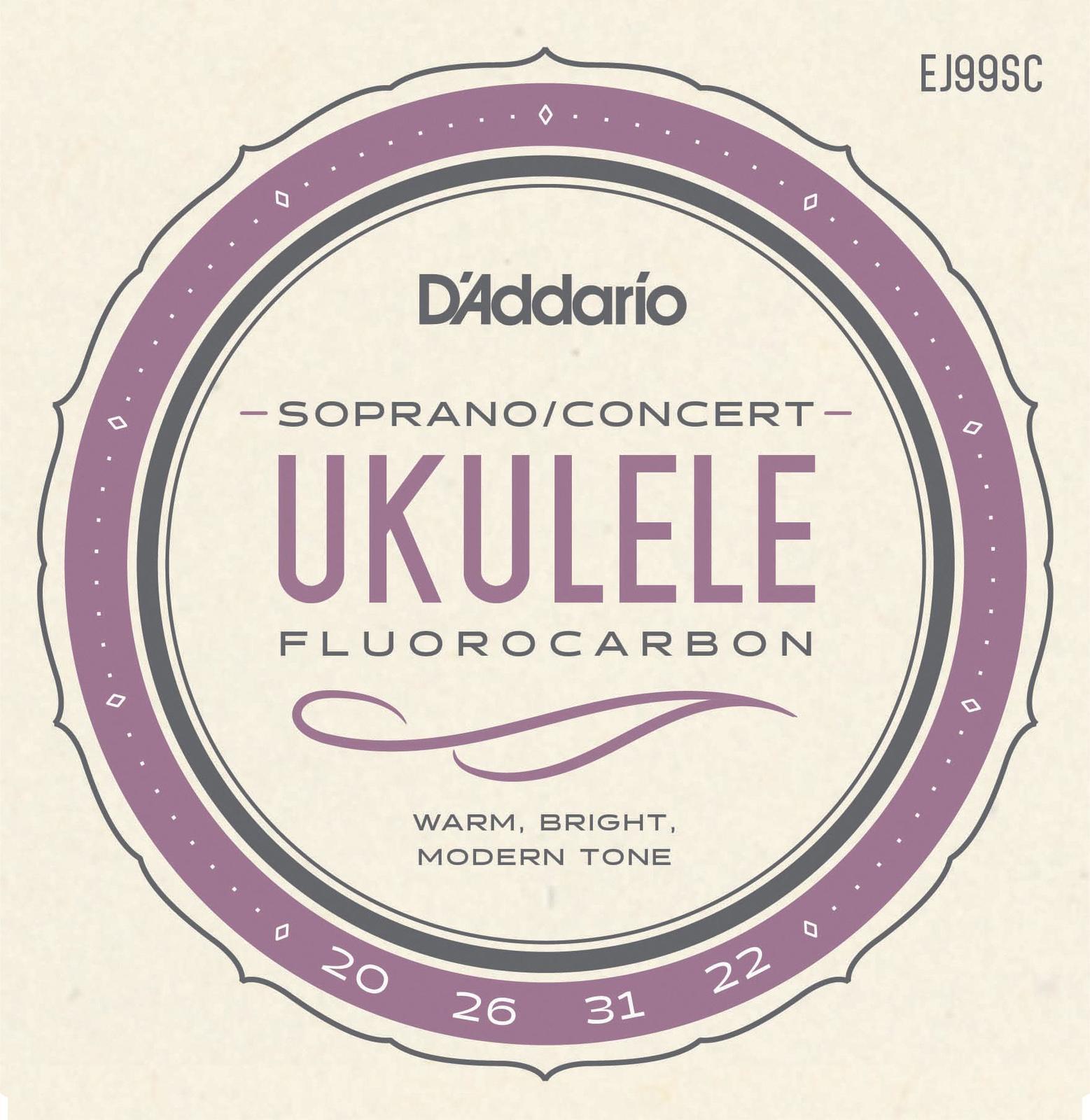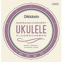 The EJ99SC Soprano / Concert Ukulele Set consists of all-nylon strings made from DAddarios exclusive Pro-Arte' Carbon strings. This fluorocarbon set is optimized for usage with standard GCEA tuning.