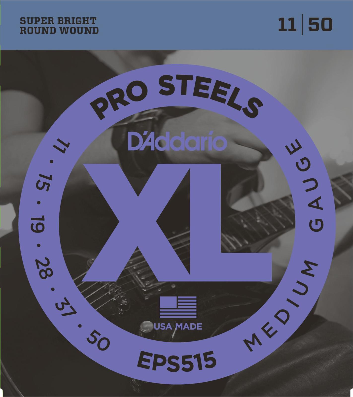 D'Addario EPS515 ProSteels Electric Guitar Strings, Medium, 11-50