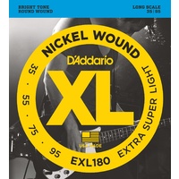 D'Addario EXL180 Nickel Wound Bass Guitar Strings, Extra Super Light, 35-95, Long Scale