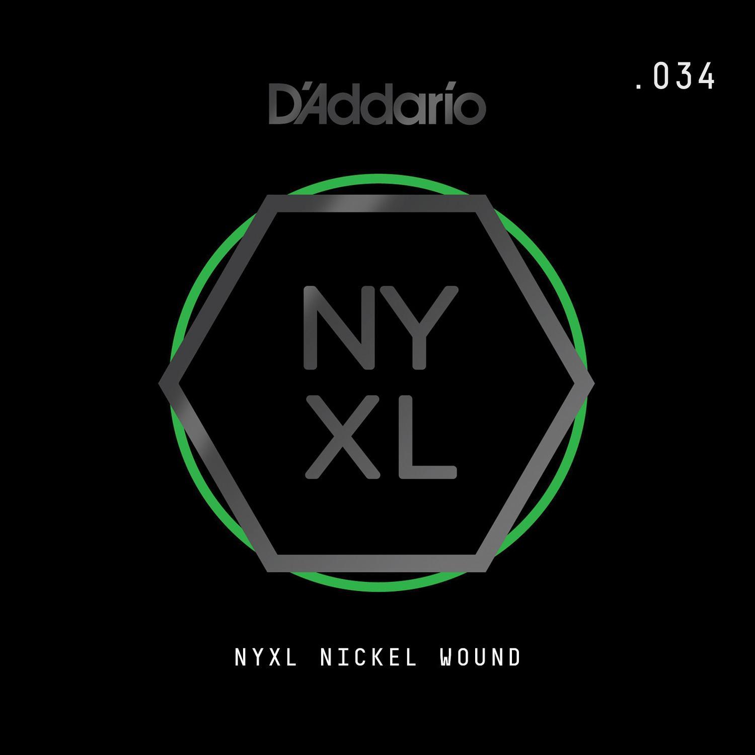 D'Addario NYXL Nickel Wound Electric Guitar Single String, .034