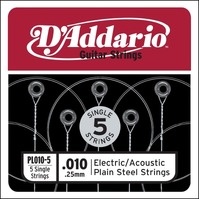 D'Addario PL010-5 Plain Steel Guitar Single String, .010 5-pack