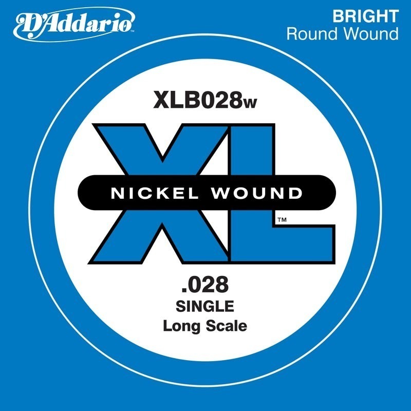 D'Addario XLB028W Nickel Wound Bass Guitar Single String, Long Scale, .028