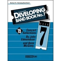 15 Concert SelectionsAn affordable collection of concert repertoire for beginning bands; great sight reading material for more advanced groups!Titles Include:Alden Bridge Overture; All The Pretty Little Horses; An American March; Christmas Spirit; Circles of Stones; Jazz Ballad; Pells Point; Phoenix Overture; Red Rock Canyon; Russian Folk Fantasy; The Showstopper; A Southern Hymn Setting; Swing Low, Sweet Clarinets; Tongue Twisters; The Whirlybird March Developing Band Book No. 7 - Baritone T.C. Composer: Anne McGinty|John Edmondson Publisher: Queenwood Instrument: Baritone|Euphonium Pages: 1