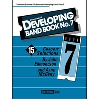 15 Concert SelectionsAn affordable collection of concert repertoire for beginning bands; great sight reading material for more advanced groups!Titles Include:Alden Bridge Overture; All The Pretty Little Horses; An American March; Christmas Spirit; Circles of Stones; Jazz Ballad; Pells Point; Phoenix Overture; Red Rock Canyon; Russian Folk Fantasy; The Showstopper; A Southern Hymn Setting; Swing Low, Sweet Clarinets; Tongue Twisters; The Whirlybird March Developing Band Book No. 7 - Trombone/Baritone B.C./Bassoon Composer: Anne McGinty|John Edmondson Publisher: Queenwood Instrument: Baritone|Bassoon|Euphonium|Trombone Pages: 1