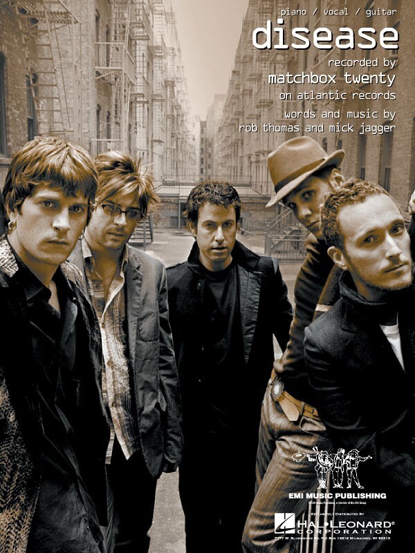 The single sheet music to the song 'Disease' by Matchbox 20 arranged forvoice with piano and guitar accompaniment.