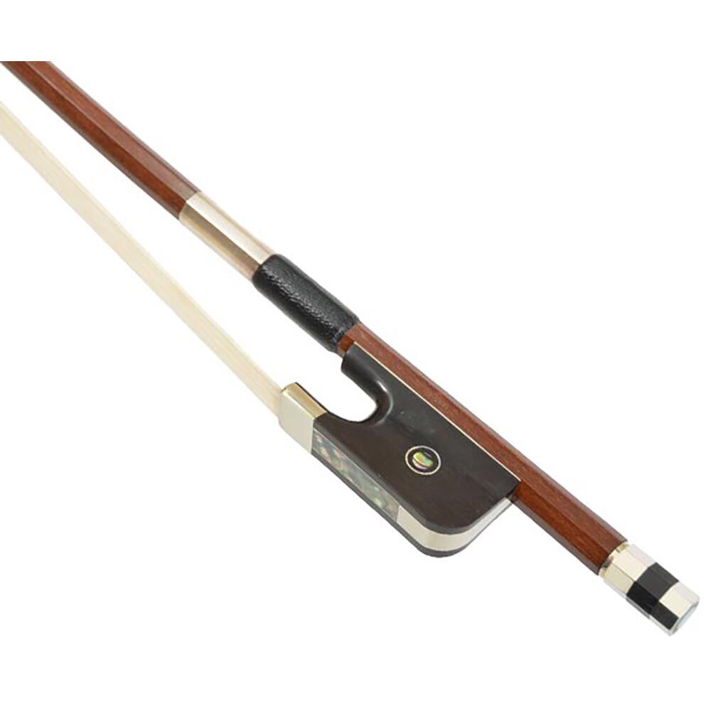 “Paul” Fine Brazilwood Double Bass Bow French style – Octagonal. Full nickel silver mounted ebony frog, Parisian eye, three part screw with eight pearl eye inlays, silver wire and leather grip. 3/4. Made in Germany.