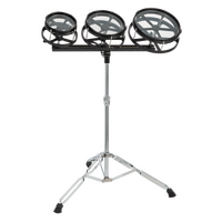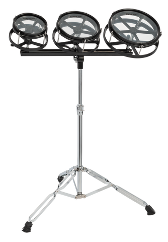 DXP DRU83BLK Rototom Set (Black) Tunable 3 toms. Cast black shells. Black hoops, frame, and bar with 4, 5 & 6 lugs respectively. Clear heads. Very solid double-braced stand with Ergo-style memory lock.