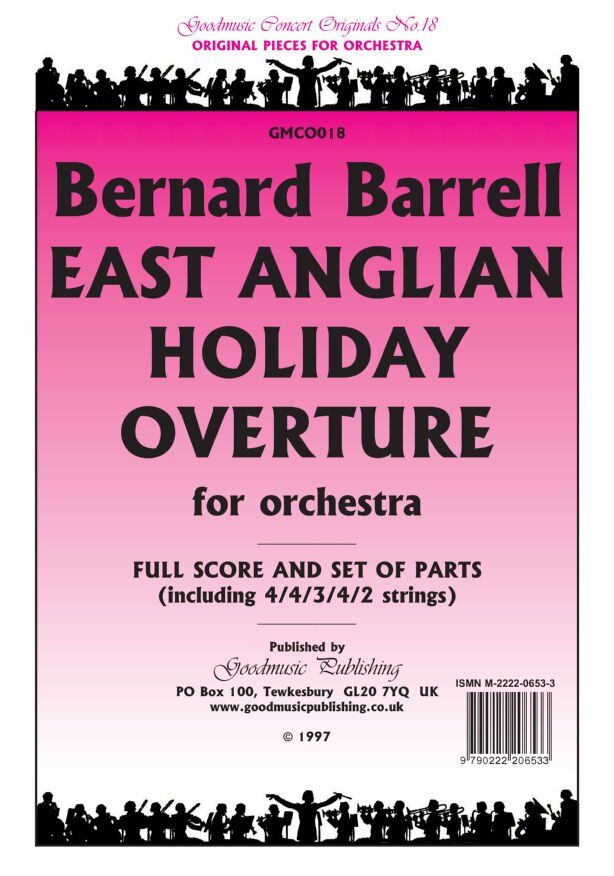 East Anglia is England's farthest East - steeped in history with a wealth of beautiful churches, it has a wide variety of scenery which is dominated by the superb skies that so many artists have captured in their work. Much of the region is rural with large areas of wind-swept heathlands and lonely marshes, as well as seaside resorts with carnivals and fun-fairs. These are all suggested in the Overture - even a hint of forgotten railways! The 3rd violin part is an easy part and may be omitted. It is not an alternative to the viola part. East Anglican Holiday Overture Composer: Bernard Barrell Publisher: Goodmusic Instrument: Orchestra Pages: 1