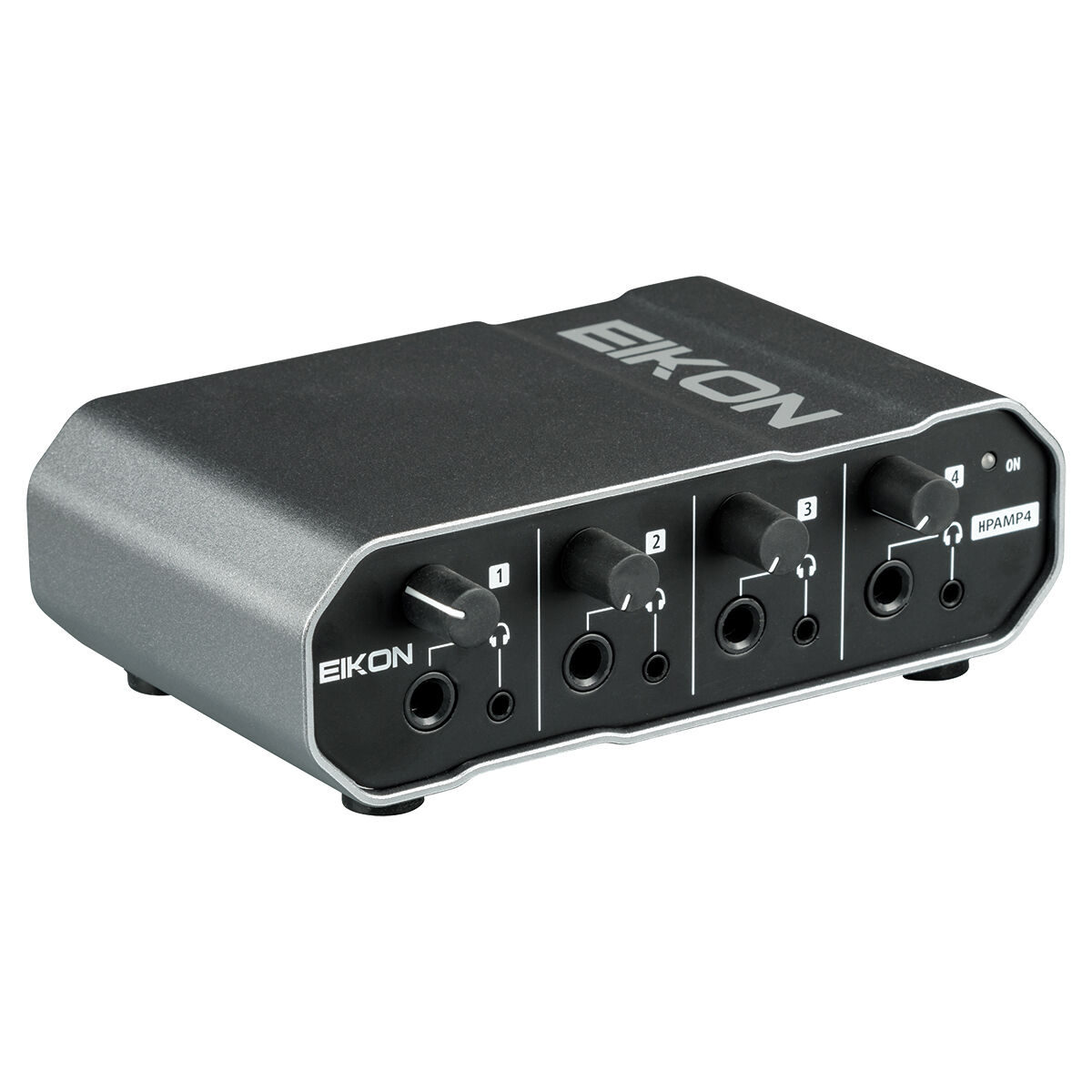 Eikon 4-Channel Headphone Amplifier The compact HPAMP4 Headphones Amplifier features a stereo input and four headphone outputs with individual level controls. It is very useful in small studios or stages when up to four people want to listen together. Thi