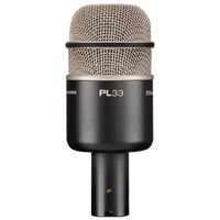 The Electro-Voice PL33 is a professional-grade supercardioid dynamic microphone designed to deliver the power, punctuation and snap of kick drums in any size sound reinforcement system or recording studio. With its tight low end, kick drum-modified mid-ra