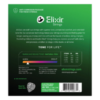 Electric Bass Nickel Plated Steel With NANOWEB® Coating Elixir® Nickel Plated Steel Bass Strings With a NANOWEB Coating deliver a rich, rounded tone With greater clarity and heavier mid-range presence. Working closely With the global bass community, we asked 4000+ players what they needed from a bass string, and recruited 1000+ players for field trials to help improve the playability and our protective NANOWEB Coating. Inspired by our field trials, Elixir Strings entire line of round wound electric bass strings now benefits from a NANOWEB Coating made exclusively for bass guitar. With playing experience also enhanced by optimized string tension profiles, flexibility and feel, our Nickel Plated Steel Bass Strings deliver: Rich, rounded tone With greater clarity* Smooth, natural feel and reduced finger squeak Greater durability and response, even during hard-hitting attacks Longer tone life than any other bass string, uncoated or coated** Elixir Strings is the only coated string brand to protect the entire string With an ultra-thin coating, keeping gunk out of the gaps between the windings. With consistent performance from gig-to-gig, Elixir Nickel Plated Steel Bass Strings remove the hassle and expense of frequent string changes. * Compared to original NANOWEB® Coating ** Elixir Strings player survey Elixir Electric Bass Strings - inspired by 4,000+ Bass Players... Electric Bass Nickel Plated Steel With NANOWEB Coating Part No. Gauge G-1 D-2 A-3 E-4 B-5 14002 4-String Super Light, Long Scale .040 .060 .075 .095 - 14052 4-String Light, Long Scale .045 .065 .080 .100 - 14077 4-String Light/Medium, Long Scale .045 .065 .085 .105 - 14087 4-String Light/Medium, Extra Long Scale .045 .065 .085 .105 - 14102 4-String Medium, Long Scale .050 .070 .085 .105 - 14202 5-String Light, Long Scale .045 .065 .085 .105 .130 14207 5-String Light/Medium, Long Scale .045 .065 .085 .105 .135 Electric Bass Nickel Plated Steel 5th and 6th String Singles With NANOWEB Coating Now you can mix and match your gauges to customize your bass strings. Whether it's a 4-, 5-, or 6-string bass, Elixir Strings has YOUR custom set of strings. How to use: Select your foundation 4 or 5-string set. For 5-string players, select your custom 5th string or use the standard 5-string Light set. For 6-string players, add your custom 6th string to your 5-string selection. Part No. Gauge G-1 D-2 A-3 E-4 B-5 C-6 15332 Medium C - - - - - 15425 Super Light B, Long Scale - - - - .125 15430 Light B, Long Scale - - - - .130 15432 Light B, Long Scale, TaperWound - - - - .130tw 15433 Light B, Extra Long Scale, TaperWound - - - - .130tw 15435 Medium B, Long Scale - - - - .135