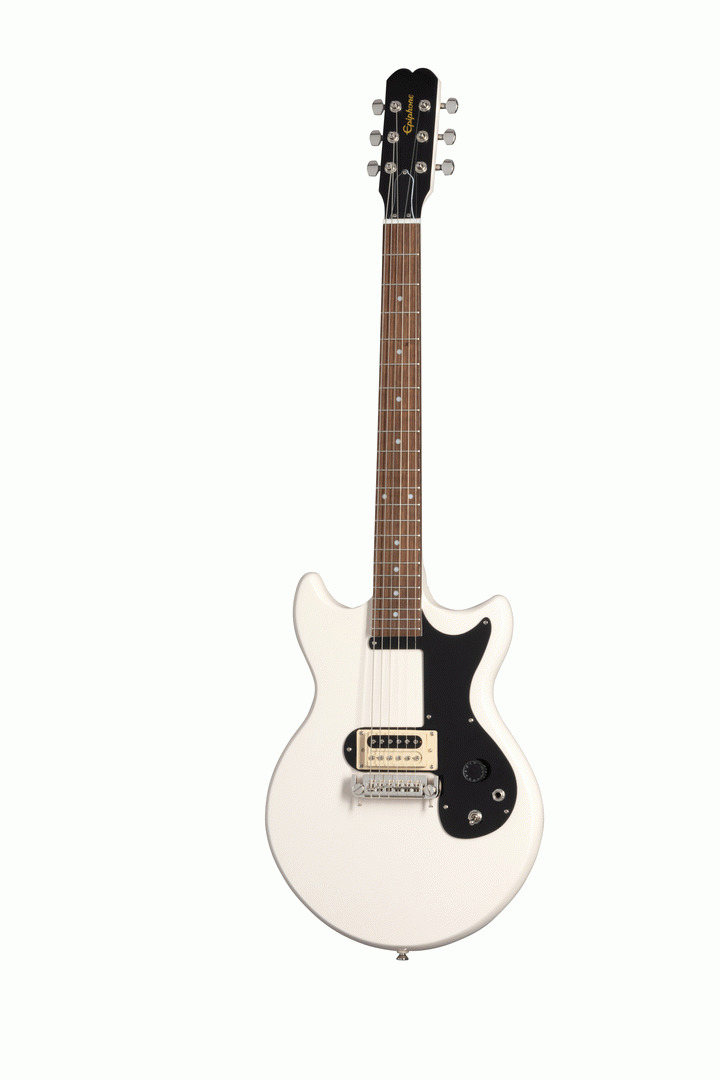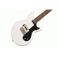 Joan Jett is without question a legendary rock musician. A member of the Rock and Roll Hall of Fame, her artistic vision and pioneering spirit have inspired countless musicians of all ages worldwide. Epiphone is proud to introduce the Joan Jett Olympic Special. Based on Joan’s longtime favorite stage guitar, it is a lightweight, stage-ready powerhouse with all of the essentials you need to rock, with no frills to get in your way. It features a single PowerHammer PRO humbucker wired to a single CTS® volume potentiometer. The single black Speed-style volume knob has a rubber grip band for precision control. An on/off toggle switch provides “kill switch” functionality. The adjustable wraparound bridge/tailpiece delivers full intonation adjustability and anchors solidly to the mahogany body for excellent sustain. Die-Cast tuners and a Graph Tech® nut anchor down the strings at the other end, and a reproduction of Joan’s signature is located on the rear of the classic Olympic Special headstock. A Custom Premium Gig Bag is included.