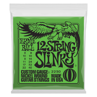 The Ernie Ball Slinky 12-String Nickel Wound Electric Guitar Strings are made from nickel plated steel wire wrapped around tin plated hex shaped steel core wire. The plain strings are made of specially tempered tin plated high carbon steel producing a well-balanced tone for your guitar. Gauges .008 .008, .010 .010, .014 .008, .024w .011, .032 .017, .040 .022w.