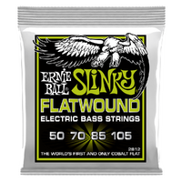 The Ernie Ball Regular Slinky Flatwound Electric Bass Strings combine the smooth feel of traditional flats and the power of cobalt. Featuring a super bright cobalt ribbon wrap, cobalt under wraps and optimal hex-core to wrap ratio, the new Flatwound Bass strings are the first flat that actually feels like a flat and sounds like a round. Gauges .050 .070, .085, .105.