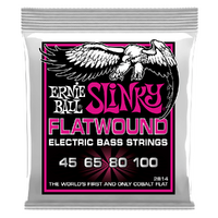 Ernie Ball Slinky Flatwound Bass Strings combine the smooth feel of traditional flats and the power of Cobalt. Featuring a Super Bright Cobalt ribbon wrap, Cobalt under wraps and optimal hex-core to wrap ratio, the new Flatwound Bass strings are the first flat that actually feels like a flat and sounds like a round. Gauges .045, .065, .080, .100.