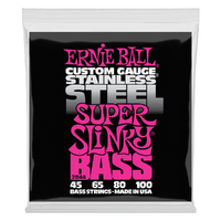 Ernie Ball Stainless Steel Slinky Electric Bass Strings are made from stainless steel wire wrapped around tin plated hex shaped steel core wire. These strings provide a brighter tone and longer string life due to stainless steels inherent anti-corrosive properties. Gauges .045, .065, .080, .100.
