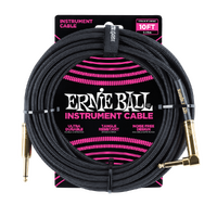 Ernie Ball 3 Meters Braided Straight / Angle Instrument Cable, Black