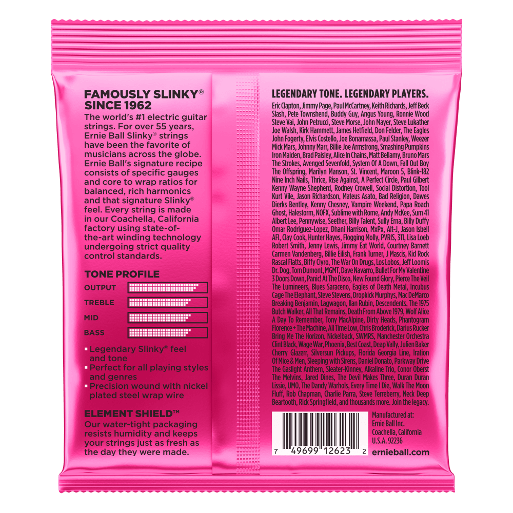 Ernie Ball Nickel Wound Electric Guitar Strings are made from nickel plated steel wire wrapped around tin plated hex shaped steel core wire. The plain strings are made of specially tempered tin plated high carbon steel producing a well-balanced tone for your guitar. Gauges .009, .011, .016, .024w, .032, .042, .052.