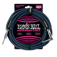 Ernie Ball 7.5 Meter Braided Straight / Angle Instrument Cable, Black / Blue