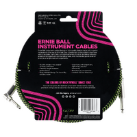 Ernie Ball 7.5 Meter Braided Straight / Angle Instrument Cable, Black / Green