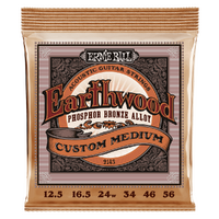 Ernie Ball Earthwood Phosphor Bronze Acoustic Guitar Strings are made from 92 percent copper, 7.7 percent tin, 0.3 percent phosphorus wire wrapped around tin plated hex shaped steel core wire. These guitar strings have a light orange, gold colour and provide a mellow, ringing sound with excellent clarity. Gauges: .013, .017, .026, .034, .046, .056.