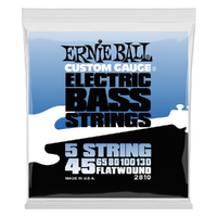 Ernie Ball Flatwound 5-string Electric Bass String with flat chrome plated steel wire wrapped around a hex shaped tin plated steel wire. Provides a smooth feel and mellow sound. Gauges .045 .065 .080 .100 .130. Part number 2810.