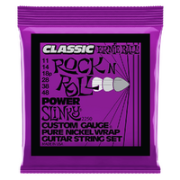 Ernie Ball Slinky Classic Rock N Roll Pure Nickel wrap electric guitar strings are made from pure nickel wire wrapped around tin plated hex shaped steel core wire, these guitar strings produce a warm rich tone with that signature Slinky feel. Gauges: 0.011, 0.014, 0.018p, 0.028, 0.038, 0.048.