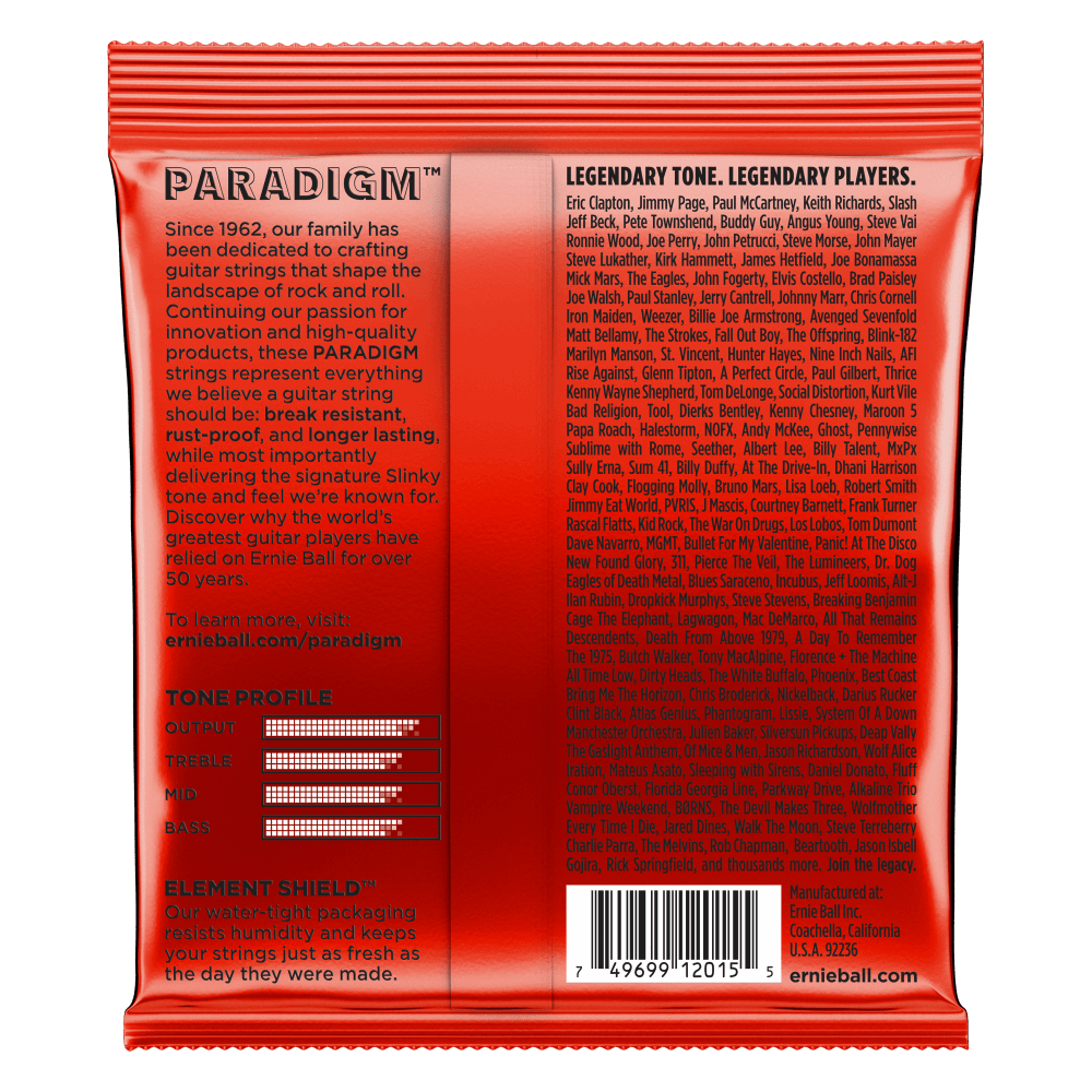 The Ernie Ball Skinny Top Heavy Bottom Slinky Paradigm Electric Guitar Strings provide unprecedented strength and longer life while retaining 100 percent slinky tone and feel. Nano treatment with breakthrough plasma enhanced wrap wire provides added corrosion resistance and reduced accumulation of tone-robbing build-up and debris. Gauges .010, .013, .017, .030, .042, .052.